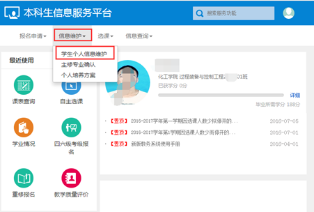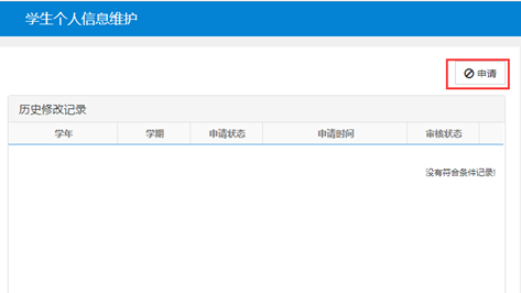 http://jwxt.cumt.edu.cn/jwglxt/,或在教务部网站首页http://jwb.cumt.edu.cn/,点击左侧“教务系统”进入到新教务系统中。点击“信息维护”--“学生个人信息维护”。进入“学生个人信息维护”界面,点击“申请”按钮。