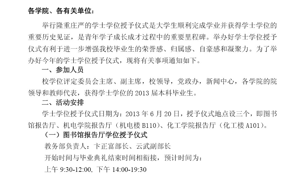 关于举办我校2013届毕业生学士学位授予仪式的通知